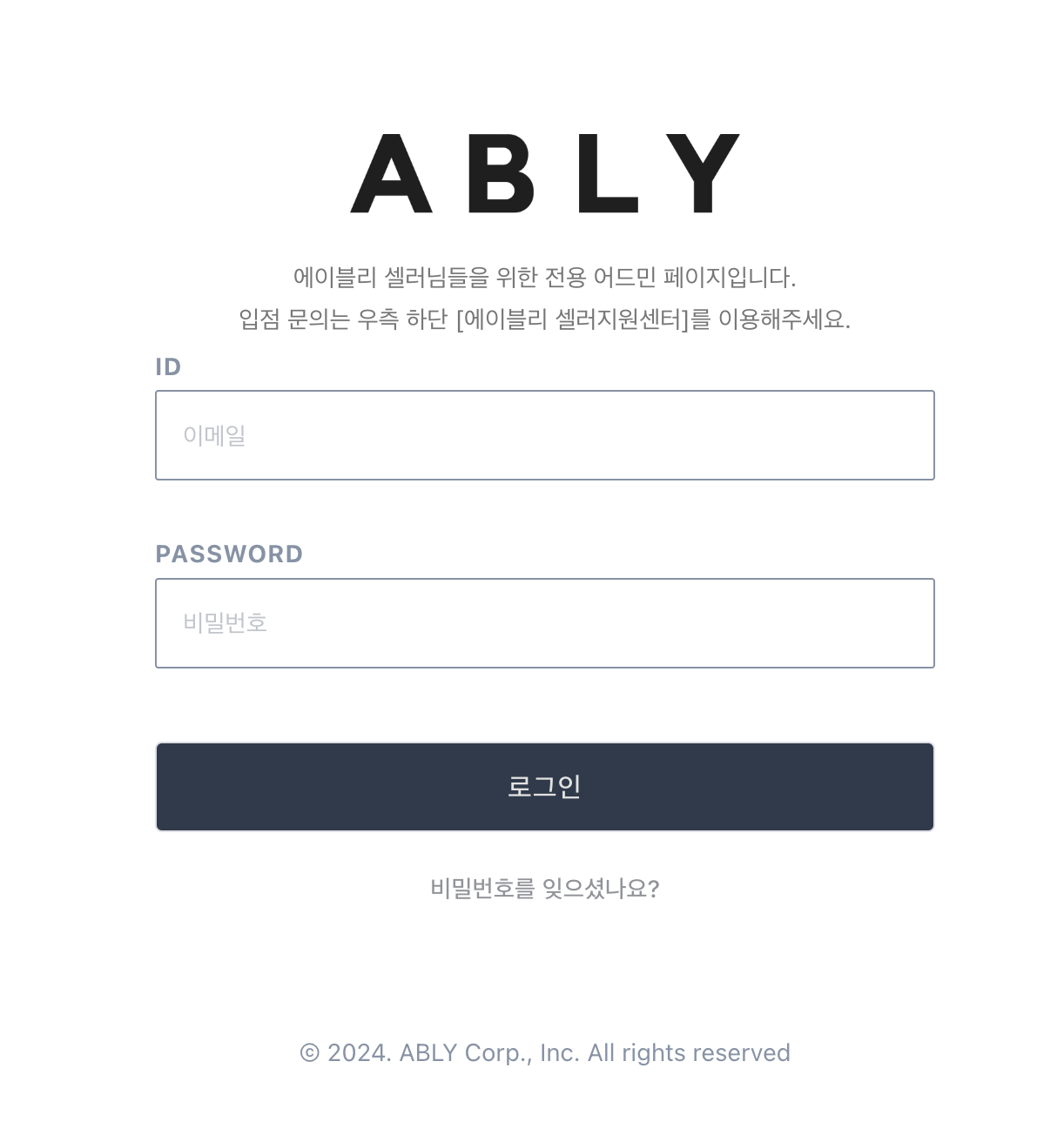 - '에이블리 어드민사이트'에서 로그인을 합니다.(아래 버튼을 클릭하면 바로 이동합니다.)